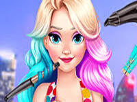 What do you think about being Elsa's new hairdresser in this transformation game? Enter the hairdressing salon and put your creativity to the test by making curly haircut in bright colors.