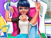 The super heroine Ladybug has just suffered a serious accident that has left her full of bruises and a broken leg bone. At the hospital perform all medical procedures to do the bandages on the bruises and perform a surgery for the correction of the broken bone of Ladybug.