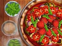 Do not just sit there and come have fun preparing a delicious pizza right now. Cut the ingredients but be careful with the knife so you do not get hurt.